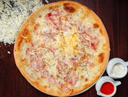 Z chrupiącym boczkiem z dodatkiem parmezanu i jajka w kremowym sosie śmietanowym -